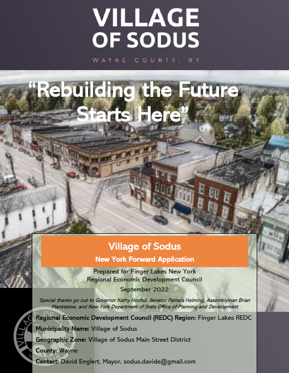 The Village of Sodus is excited to submit a grant application for the NY Forward program, which might inject millions of dollars into our community. Thank you to everyone who participated in this process and made our application possible!
